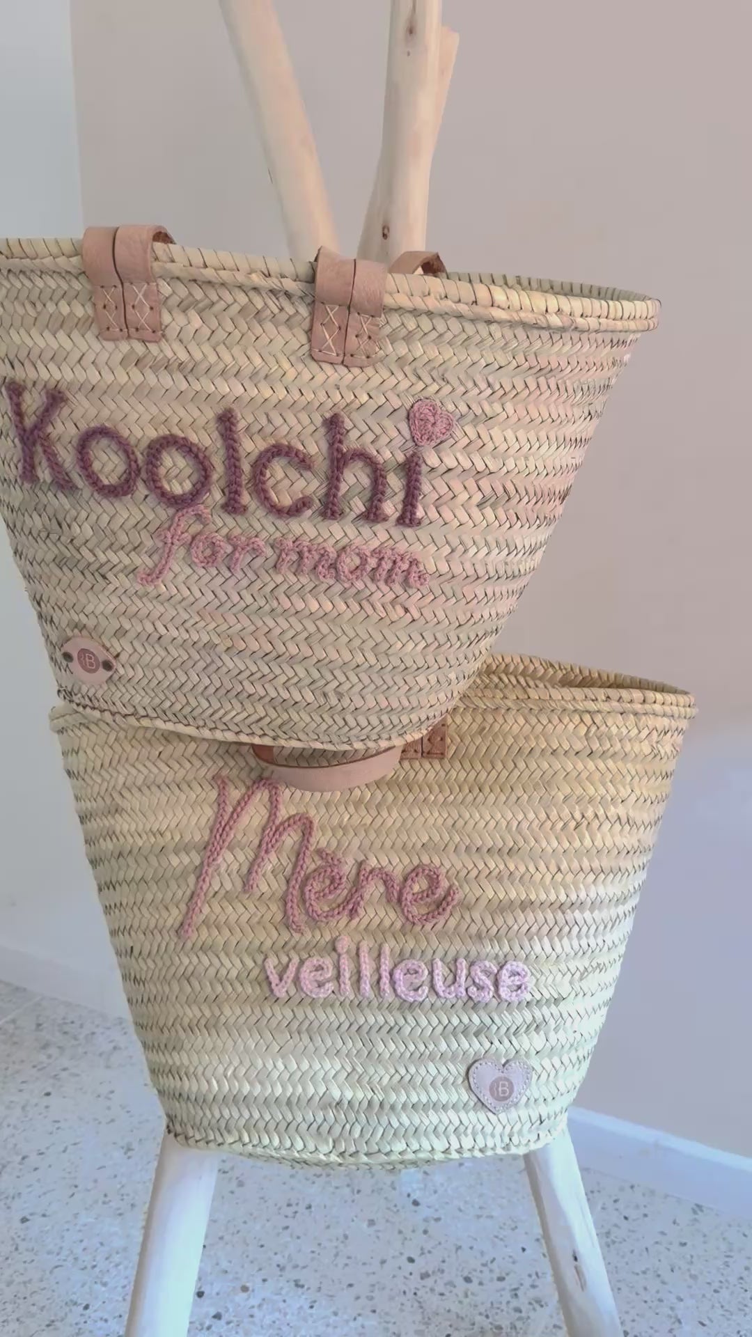 Panier brodé « Mère-veilleuse » Cadeau personnalisé Fête des Mères