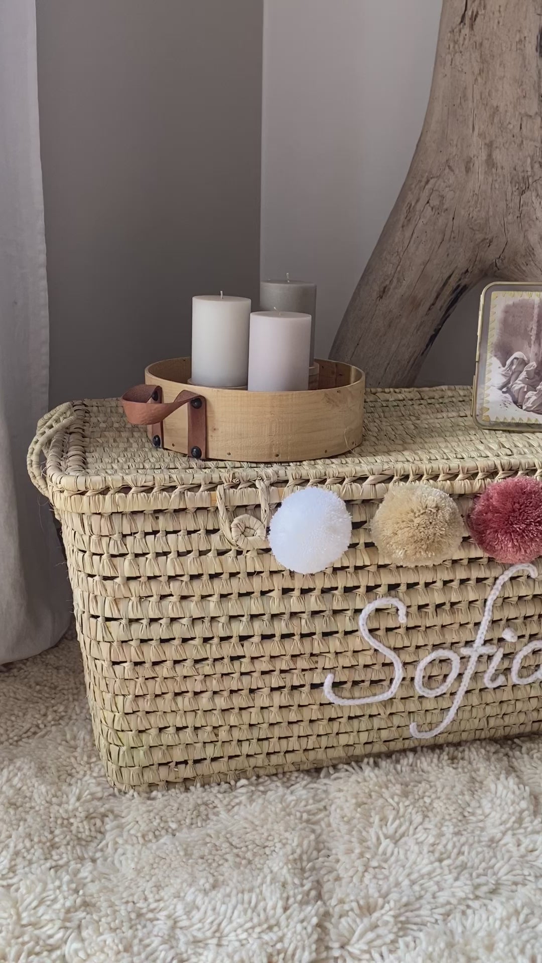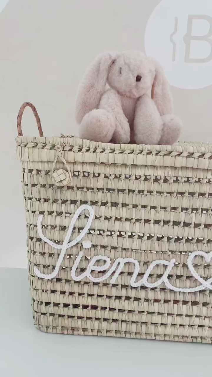 Malle de rangement en osier personnalisée, coffre de rangement à personnaliser en feuilles de palmier, coffre à jouets